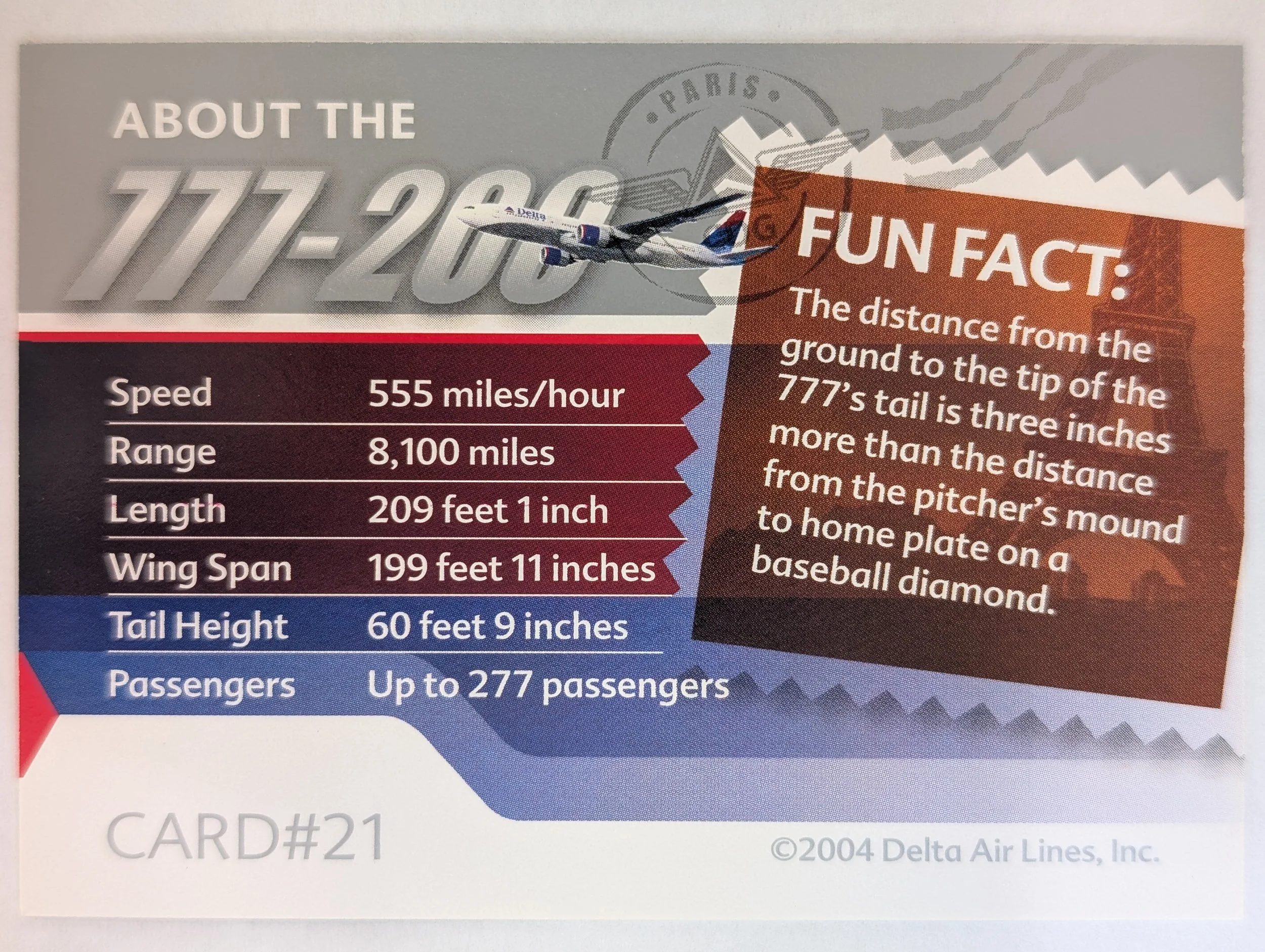 With the second series of Delta Aircraft cards, Delta tried to celebrate the destinations and the aircraft. With card #18, Delta celebrated 75 years of service. The 2004 Trading cards were some of the most coveted of the cards that Delta Air Lines printed.