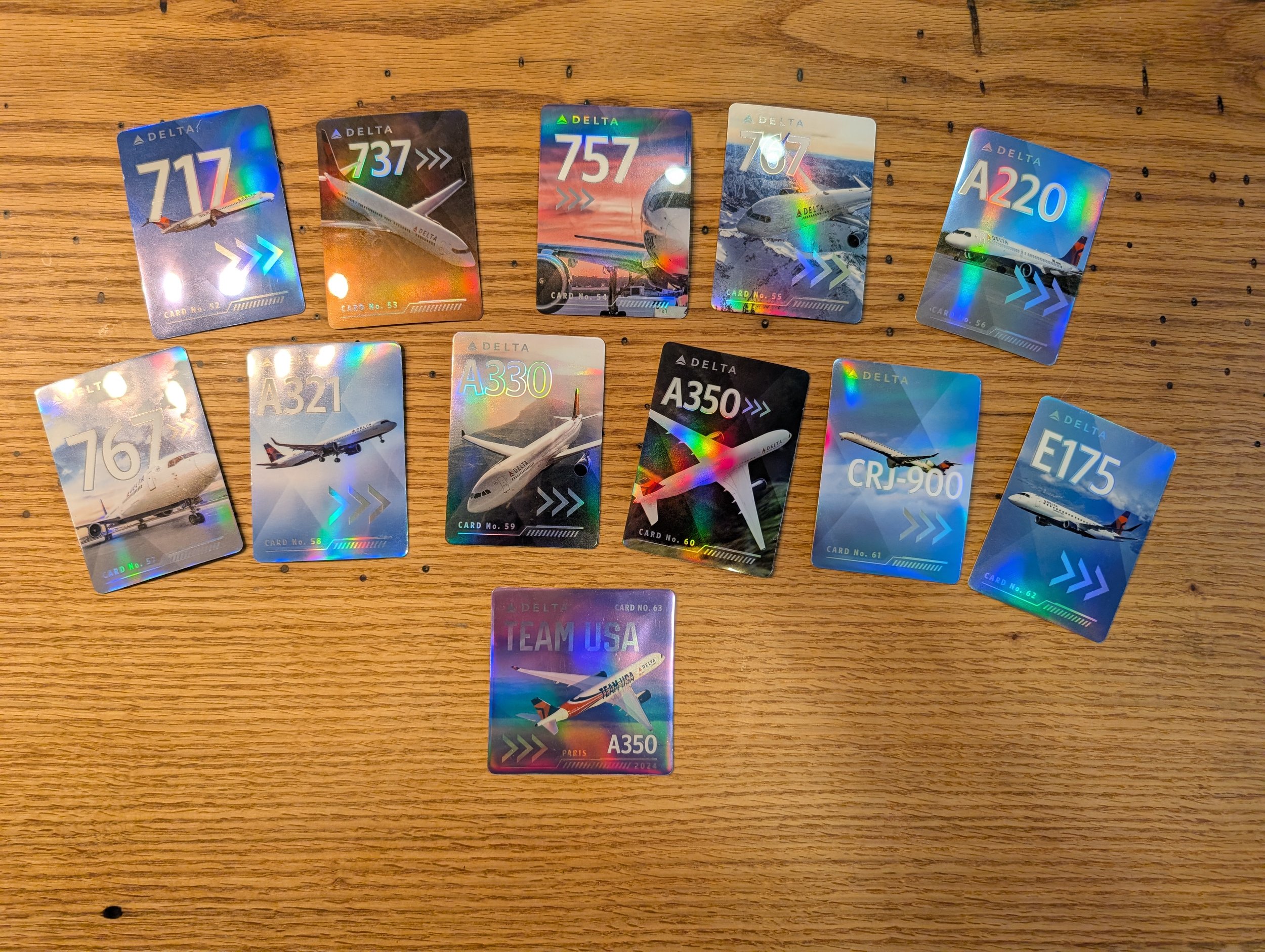 In 2024, Delta printed one card to commemorate the 2024 Summer Olympics. Delta changed the Livery on one A350 to carry athletes to the Olympics. Card #63 was printed to commemorate that. So far, it is the only non-rectangular card.