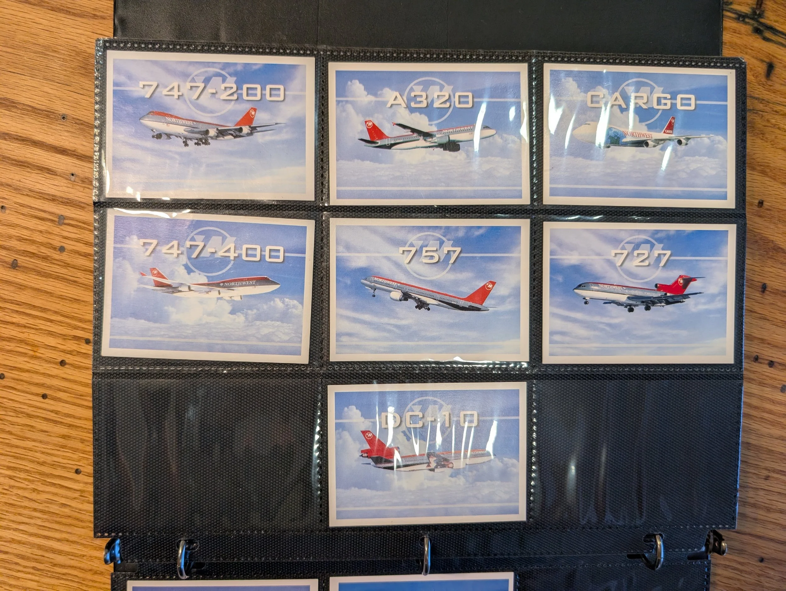 I believe these cards were printed around 2000. It was before the Livery and Logo change in 2003, but it was after the KLM joint venture. also, they changed their fleet and dropped several aircraft around that time. Also, this printing has one card to show off the “Cargo” side of Northwest Airlines
